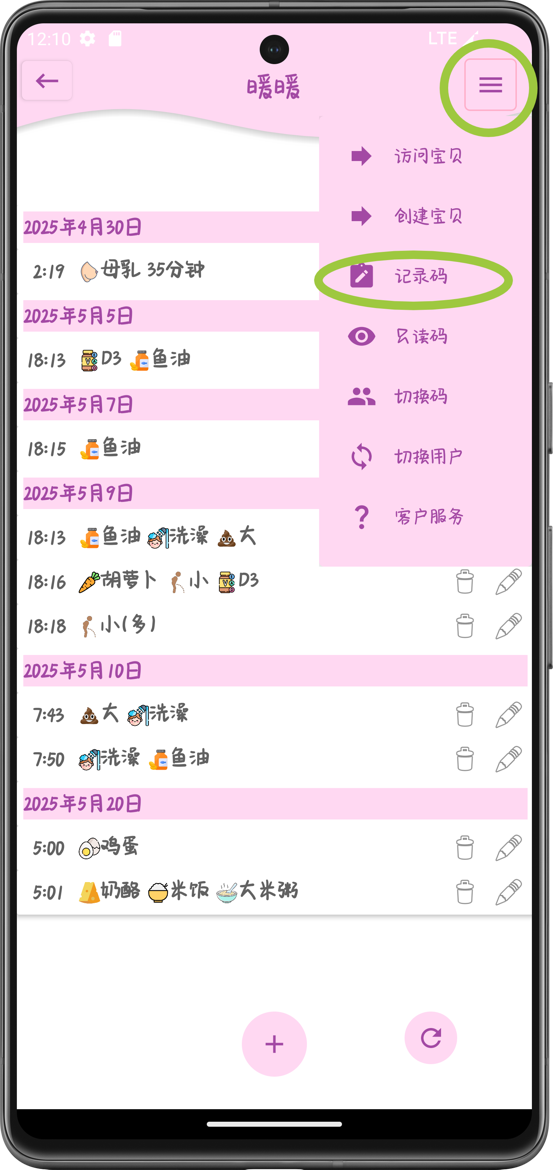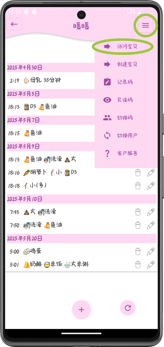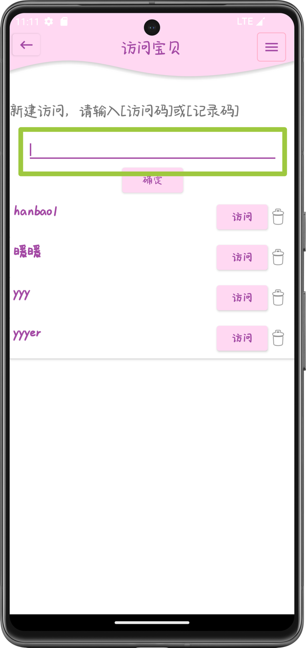 3.家庭成员将获得的记录码输入到“访问宝贝”界面